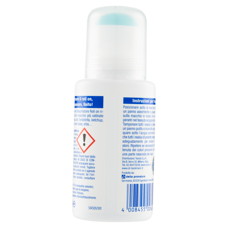 Posizionare sotto la macchia da trattare un panno assorbente e passare il roll on sulla macchia in modo che la soluzione penetri nel tessuto sciogliendo la macchia. Tamponare tutti i residui di detergente con un panno pulito e inumidito oppure sciacquare sotto l'acqua corrente. Assicurarsi che tutti i residui di prodotto vengano rimossi adeguatamente per evitare di lasciare aloni. Ripetere se necessario. Verificare la tenuta dei colori provando il prodotto su una parte nascosta del capo.; Smacchiatore Roll on Attenzione! Provoca grave irritazione oculare. In caso di consultazione di un medico, tenere a disposizione il contenitore o l'etichetta del prodotto. Tenere fuori dalla portata dei bambini. IN CASO DI CONTATTO CON GLI OCCHI: sciacquare accuratamente per parecchi minuti. Togliere le eventuali lenti a contatto se è agevole farlo. Continuare a sciacquare. Se l'irritazione degli occhi persiste, consultare un medico.
