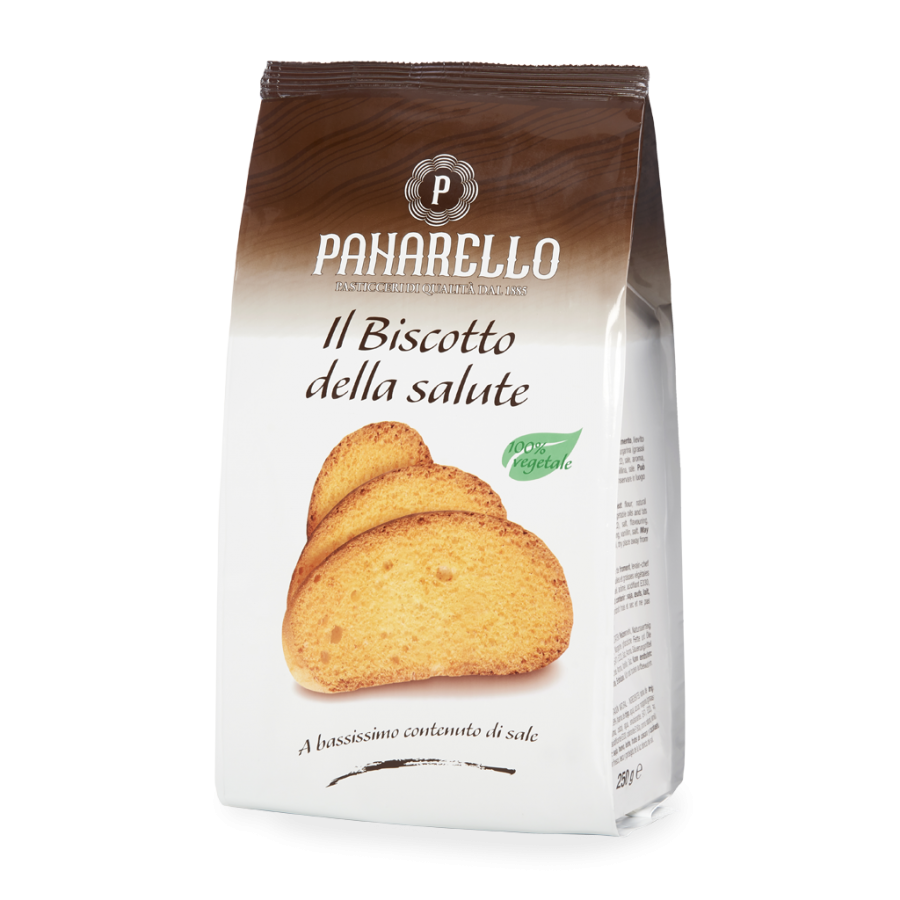 Il nostro biscotto della salute da oggi ha una nuova ricetta caratterizzata dalla semplicità. Il prodotto è infatti realizzato solo con farina, zucchero, margarina e con il nostro lievito naturale. Tale semplicità di ricetta lo rende digeribile e leggero, adatto alla colazione di tutti i giorni. • 100% vegetale Realizzato esclusivamente con ingredienti vegetali. • a bassissimo contenuto di sale Sono molteplici i benefici che si hanno nella riduzione del consumo di sale nella dieta alimentare. La riduzione progressiva ha infatti un effetto positivo sulla salute, sia come misura preventiva che curativa: aumenta la resistenza ossea, riduce la pressione arteriosa, migliora la funzionalità di cuore, vasi sanguigni e reni. Prodotto dolciario da forno a lievitazione naturale.