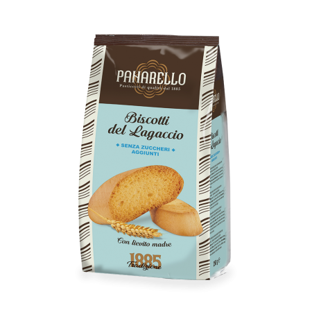 Il biscotto del lagaccio Senza Zuccheri Aggiunti rappresenta un prodotto nutrizionalmente controllato, senza l'apporto di zuccheri che non siano quelli naturalmente contenuti nelle sue materie prime, realizzato con la sola lievitazione naturale e a basso contenuto di sale. Questo prodotto ha le stesse caratteristiche di bontà, leggerezza, friabilità che hanno reso famoso il Lagaccio Panarello Classico. Prodotto dolciario da forno a lievitazione naturale senza zuccheri aggiunti con edulcorante. Contiene in natura zuccheri. A basso contenuto di sale.