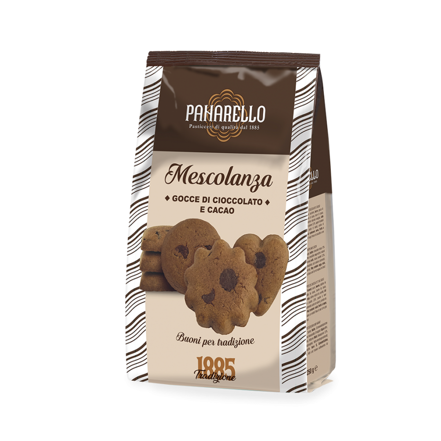 La Mescolanza, grande classico della tradizione dolciaria genovese, viene resa ancora più speciale dall'aggiunta di golose gocce di cioccolato e prelibato cacao. I biscotti dalle inconfondibili forme che richiamano i semi delle carte da gioco, sono realizzati nel rispetto dell'antica ricetta con l'utilizzo di ingredienti semplici, genuini e selezionati come burro, zucchero e latte. La Mescolanza con gocce di cioccolato e cacao mantiene inalterata l'ineguagliabile bontà di un tempo per un sapore irresistibile tutto da gustare!