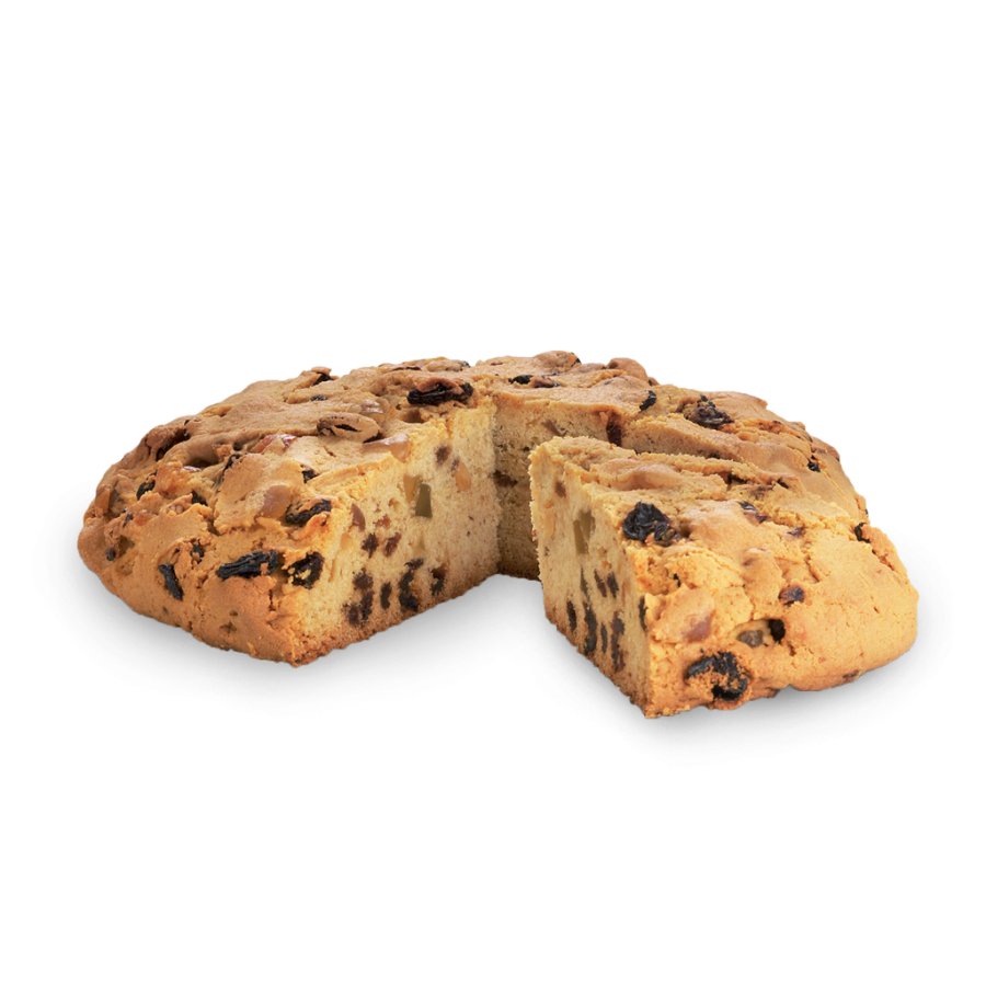 PRODOTTO DOLCIARIO DA FORNO Farina di frumento, uva sultanina, burro, zucchero, latte parzialmente scremato, scorza di arancia candita (scorzone d’arancia, zucchero, sciroppo di glucosio), cedro candito (cedro, zucchero, sciroppo di glucosio, antiossidante: anidride solforosa), tuorlo d’uovo zuccherato (tuorlo d’uovo, zucchero), nocciole, marsala, agenti lievitanti (difosfato disodico, carbonato acido di sodio), amido di frumento, pinoli. Può contenere: soia, arachidi, altra frutta a guscio.