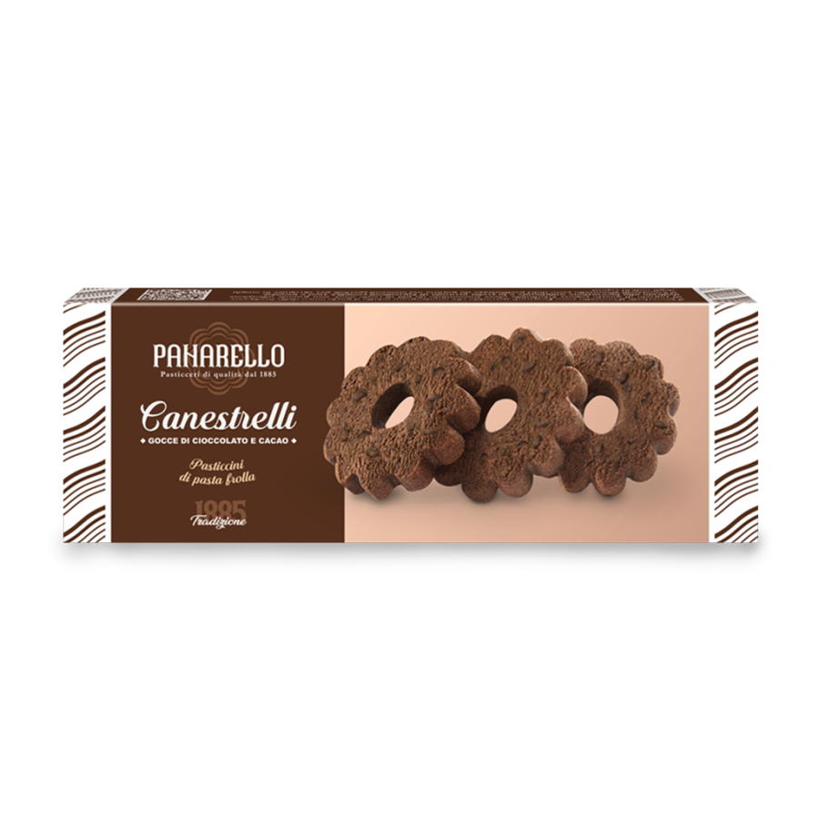 Il gusto e la fragranza di un grande classico di pasticceria si riscoprono in una vera golosit firmata Panarello. I Canestrelli gocce di cioccolato e cacao, realizzati nel rispetto della ricetta tradizionale, utilizzando solo ingredienti genuini e arricchendo limpasto con prelibato cacao, sapranno conquistare anche i palati pi golosi!