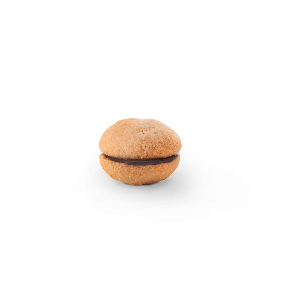 PRODOTTO DOLCIARIO DA FORNO Farina di grano tenero, zucchero, “Nocciola Piemonte IGP” tostata 17%, burro, cioccolato 10%: (pasta di cacao, zucchero, burro di cacao, emulsionante: lecitina di soia, aroma naturale di vaniglia). Può contenere: uova e frutta a guscio.