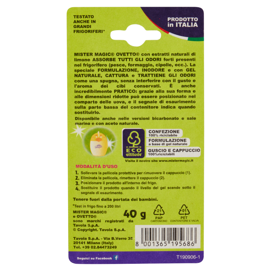 Ovetto Assorbiodori Frigo con Estratti Naturali di Limone 40 g