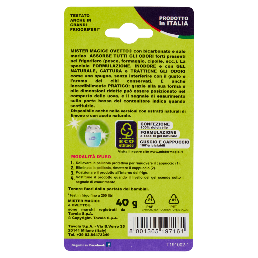 Ovetto Assorbiodori Frigo con Bicarbonato e Sale Marino 40 g