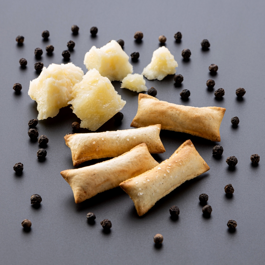 Prodotto da forno tipo “0” con pecorino, pepe e olio extra vergine d’oliva (5,5%)